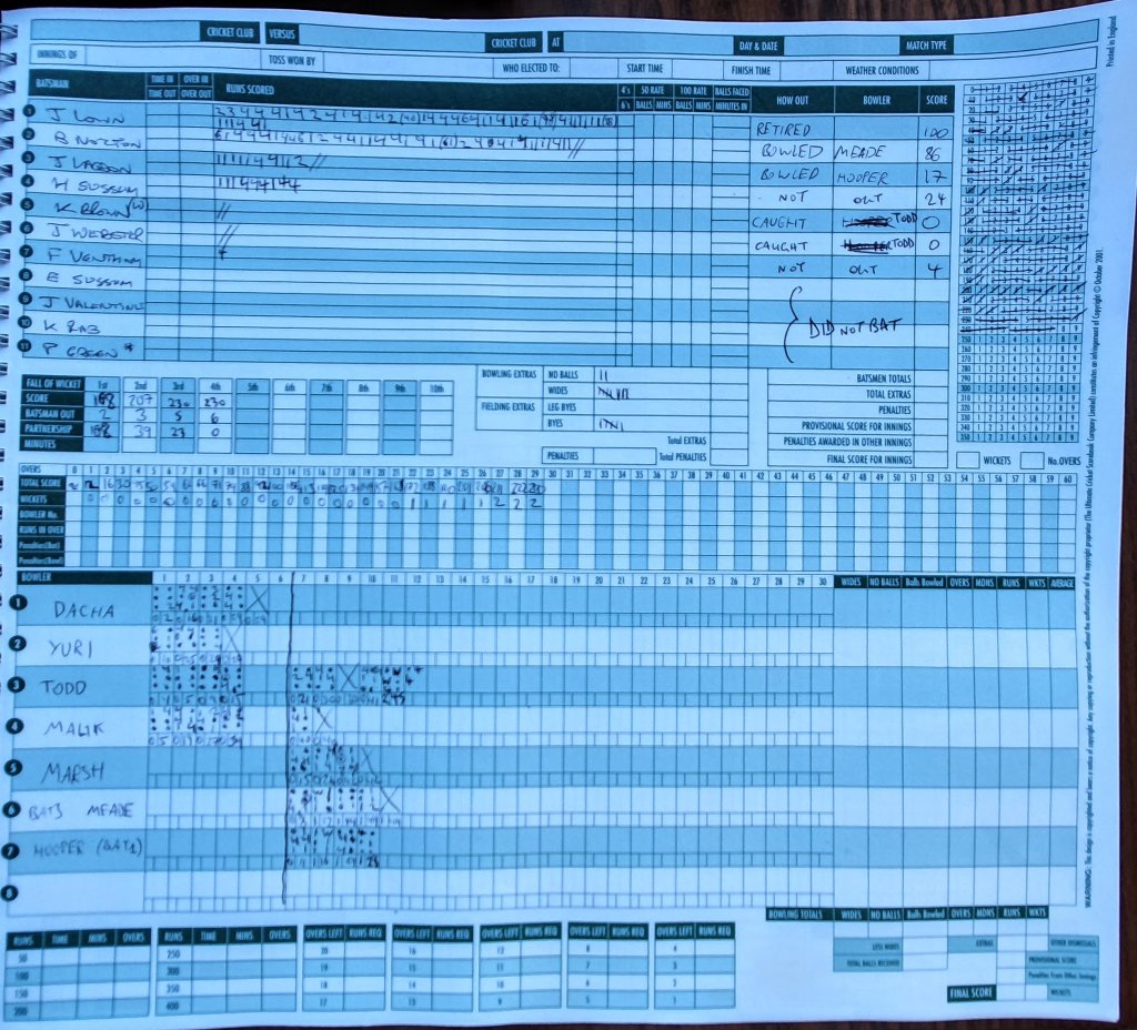 | Soho Cricket Collective | 142 | 8 | 40 | Loss |