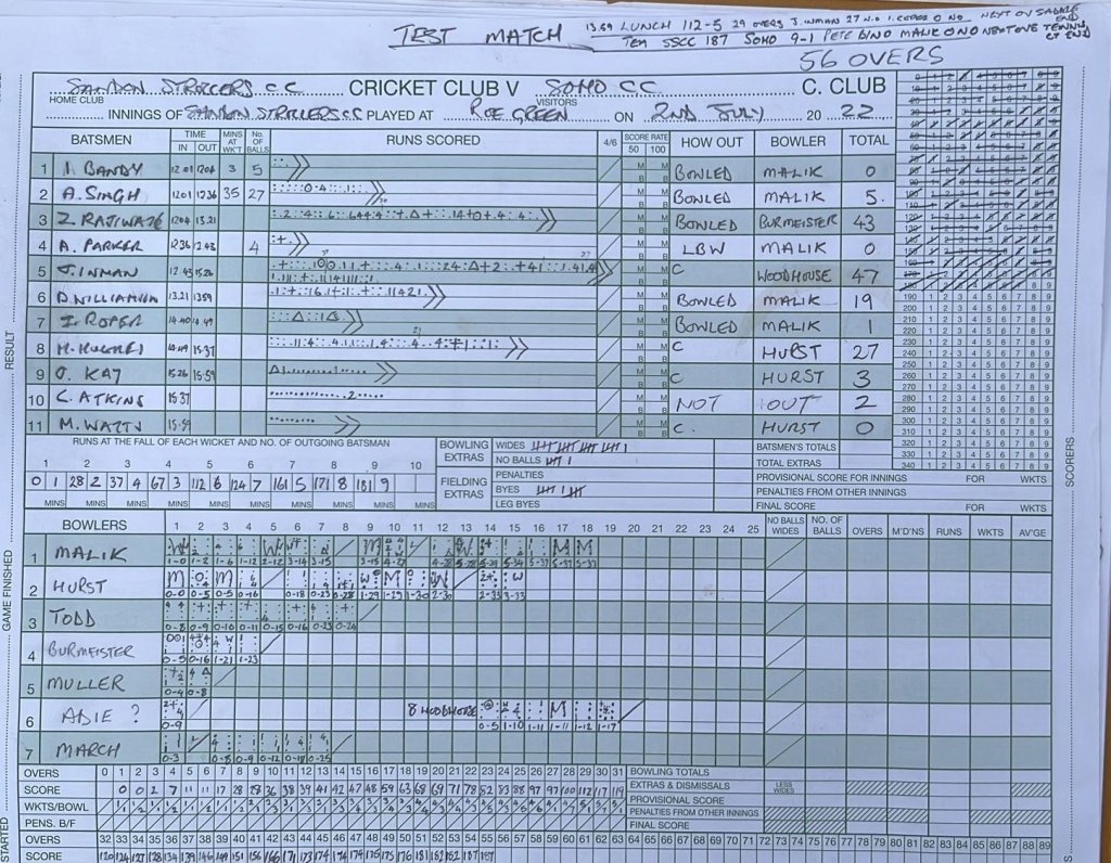 | Soho Cricket Collective | 267 | 20 | 50.0 | Loss |