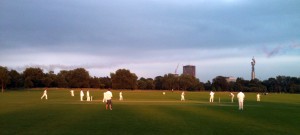 Olympics 2012… Even if I am not allowed to even think those words outside of copyright, I have! It was the night of the opening ceremony and a night of cricket. The SCC versus Breath Of Life, kind of at home at Regent’s Park, the Hub for a 20-20. The weather was bruising but on the whole it held out. Okay, there was some rain, but not much, comrades!